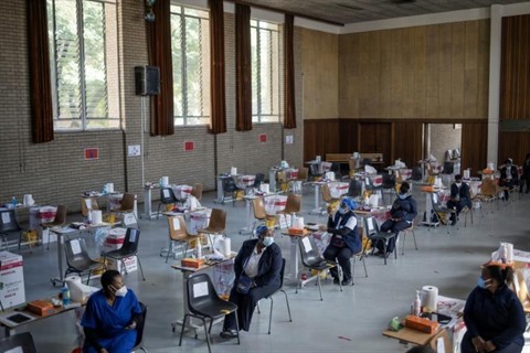 | Des personels soignants attendent des doses de Pfizer pour commencer la vaccination à l'hôpital de Germiston, en Afrique du Sud, le 17 mai. |