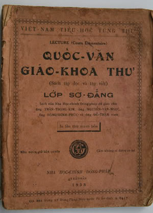 | Le livre Quôc van giao khoa thu (Manuel de langue vietnamienne) pour classe élémentaire. |