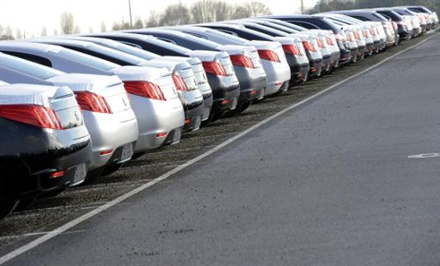 | Des voitures du constructeur français PSA Peugeot Citroen, sorties d’usines, garées le 17 février dernier à Rennes. |