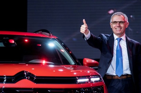 | Carlos Tavares, le Pdg du groupe au Salon automobile de Shanghai, le 18 avril. |
