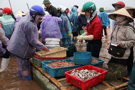 Ici, les transactions se font très rapidement. Les prix sont généralement stables et les clients sont des habitués. Nous ne vendons que des produits frais, précise Nguyên Thi Mo, l'épouse d'un pêcheur : «Entre septembre et mars, c’est la pêche d’hiver et la haute saison du commerce. Nous vendons tous sortes de produits : crevettes, poissons, crabes, raies, calamars et pieuvres. Tout est vendu frais ou glacé, sans aucun conservateur».