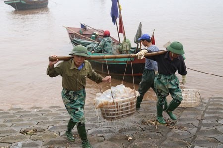 Près d'un millier de bateaux de pêche mouillent au port de Giao Hai. Chaque sortie en mer dure 12 heures et rapporte entre 5 et 6 millions de dôngs. Les frais de carburants et autres sont estimés à 2,5-3 millions de dôngs. La pêche dépend beaucoup des conditions climatiques. Malgré des hauts et des bas, les pêcheurs de Giao Hai aiment leur métier. Nguyên Thi Mo ajoute : «Les frais occasionnés pour une sortie sont de l’ordre de 2,5 millions de dôngs. On part en mer le soir et rentre au petit matin».