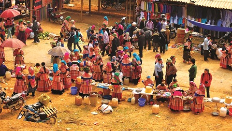 Dès les premières lueurs de l’aube résonnent le bruit des khèn (flûte de pan), des cornes, des rires enjoués, des sabots des chevaux… Les familles les plus fortunées s’y rendent en moto alors que les plus modestes y vont à pied. Habillés en costumes traditionnels colorés, équipés de parapluie et ayant multitudes d’objets à vendre ou échanger, les H’mông se rendent au marché de Ta Sin Thàng comme à un lieu de rendez-vous.