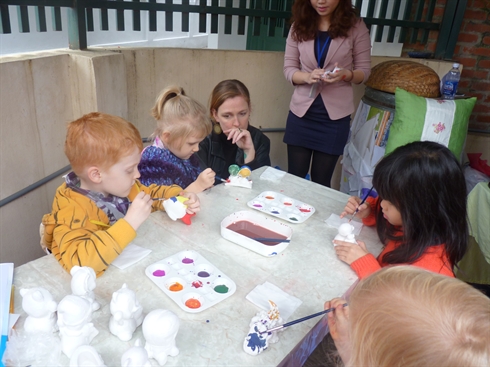 | Les enfants profitent du marché de Noël pour essayer à la peinture |