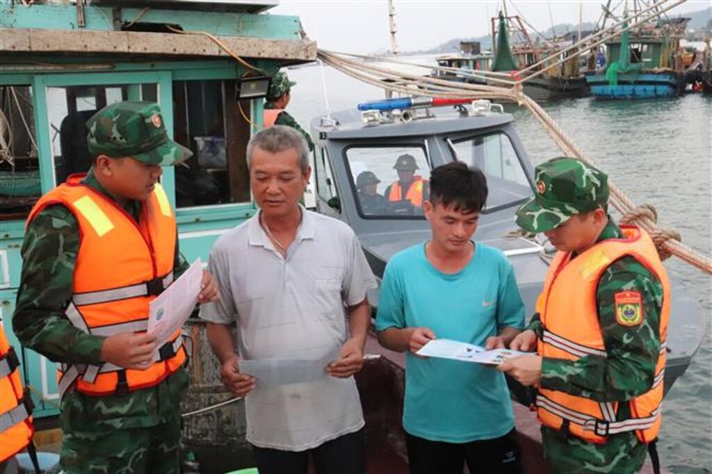 | Des garde-frontières de Quang Ninh (Nord) sensibilisent les pêcheurs à ne pas pratiquer la pêche illégale. |