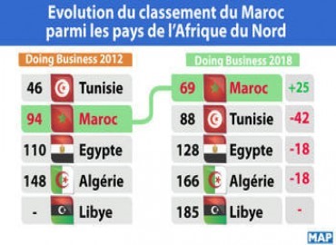 Dans cette édition 2018 du rapport Doing Business, le Maroc a obtenu un score de 67,91 sur 100, ce qui signifie qu’il est à un tiers du chemin vers la meilleure performance au monde, d’autant plus que le Maroc a également maintenu sa position dans la deuxième meilleure catégorie des pays en matière de facilitation du commerce et des affaires au monde.