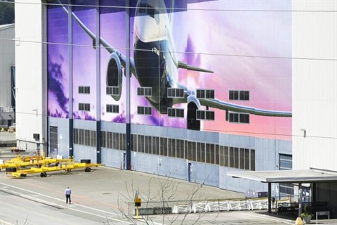 | Un hangar de l'usine Boeing à Renton, le 20 avril |