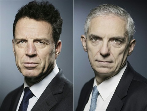 | Combo des deux candidats à la présidence du Medef, de gauche à droite: Geoffroy Roux de Bezieux et Alexandre Saubot. |