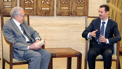 | Le président syrien Bachar al-Assad (droite) et l'émissaire international Lakhdar Brahimi, le 21 octobre à Damas. Photo : AFP/VNA/CVN |