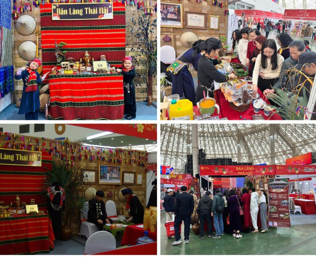 | Le stand du village touristique Thai Hai à la Foire du Printemps 2026 au Centre d'expositions du Vietnam, dans la commune de Dông Anh à Hanoï. |