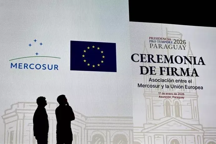 Le président paraguayen Santiago Pena, dont le pays assure la présidence du Mercosur, a remercié les dirigeants des deux blocs pour leurs efforts, qualifiant le 17 janvier de "journée véritablement historique".