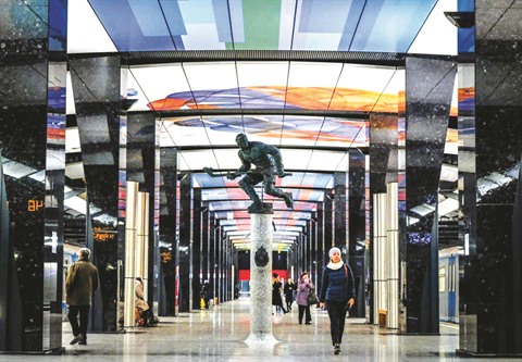 | Station CSKA, une des nouvelles stations du métro moscovite version XXIe siècle, loin des normes traditionnelles. |