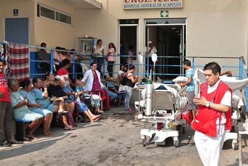 | Des patients évacués d'un hôpital après le tremblement de terre, le 18 avril à Acapulco. |