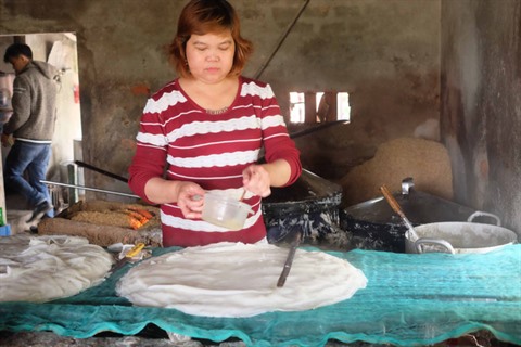 | Chaque jour, Mme Muoi produit une centaine de kilogrammes de vermicelles de riz. |
