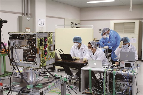 | Des ingénieurs vietnamiens fabriquent le satellite MicroDragon. |