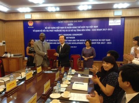 | Signature d'un programme de coopération entre le ministère de la Construction et la Banque mondiale, le 28 juin à Hanoï. |