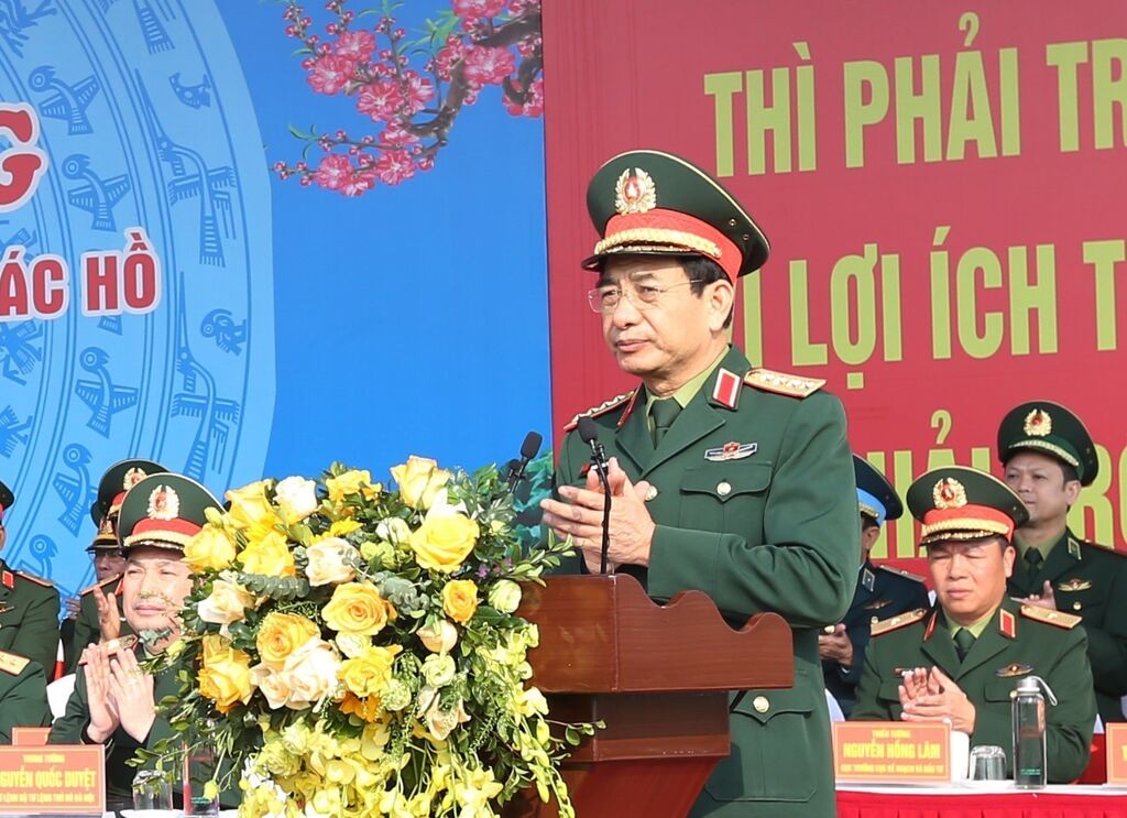 | Le ministre de la Défense, Phan Van Giang, s'exprime lors de la cérémonie, le 30 janvier. |