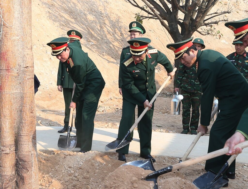 Après la cérémonie de lancement, le général Phan Van Giang, le général Luong Cuong, président du Département général de la politique de l’Armée populaire du Vietnam, le général de corps d’armée Nguyên Tân Cuong, chef d'état-major général de l’Armée populaire du Vietnam et vice-ministre de la Défense, et des délégués ont planté des centaines d’arbres dans le campus du musée actuellement en construction.