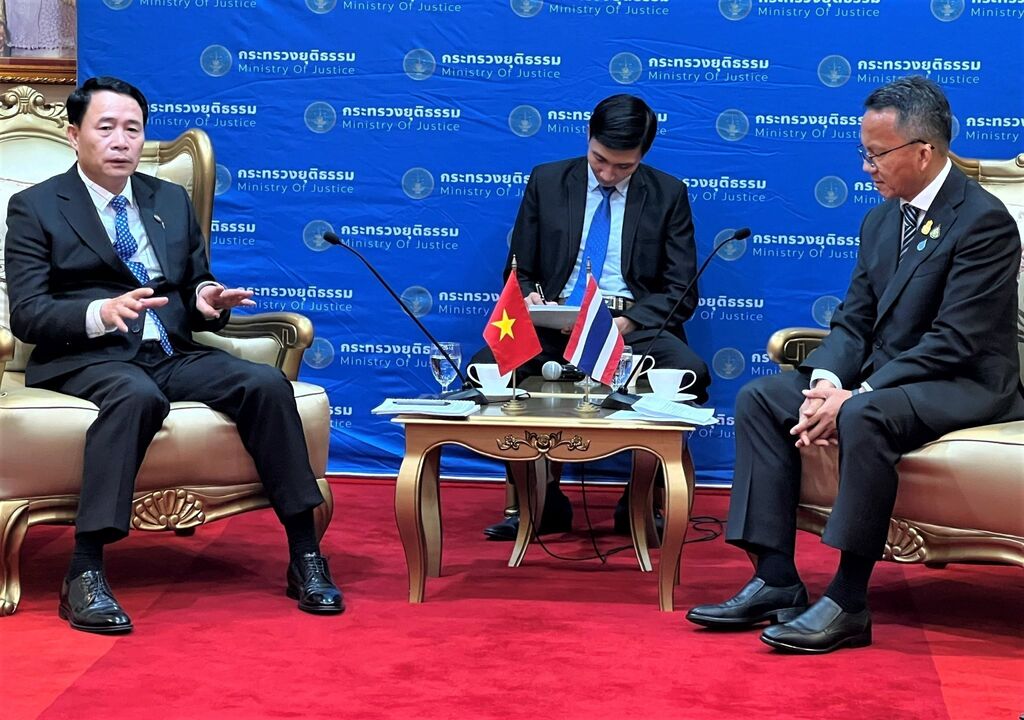 Lors de la rencontre avec le ministre thaïlandais de la Justice, Somsak Thepsuthin, les deux parties ont évalué des résultats de coopération obtenue ces derniers temps et proposé des orientations de leur coopération future, axées sur les domaines d'intérêt commun tels que la criminalité liée à la drogue, le terrorisme, la traite des êtres humains et la gestion des prisons...