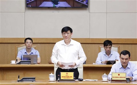| Le ministre p.i de la Santé, Nguyên Thanh Long, prend la parole lors de la séance de travail de la Permanence du gouvernement sur la prévention et la lutte contre le COVID-19, le 25 juillet à Hanoï. |