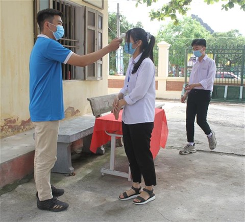 | Vérifier la température corporelle pour lutter contre le COVID-19 à Ninh Binh (Nord). |