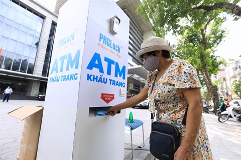 | Une machine de distribution gratuite de masques à Hanoï. |