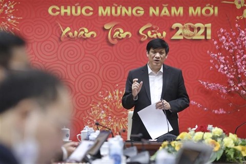 | Le ministre de la Santé, Nguyên Thanh Long, lors d’une réunion en ligne avec les villes et provinces touchées par le COVID-19, le 5 février à Hanoï. |
