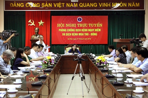 | La ministre de la Santé, Nguyên Thi Kim Tiên, lors de la visioconférence sur la les maladies dangereuses et émergentes tenue le 27 septembre à Hanoi |
