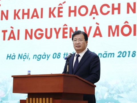 | Le vice-Premier ministre Trinh Dinh Dung lors de la conférence - bilan des activités du secteur des ressources naturelles et de l’environnement en 2017 et les missions de 2018. |
