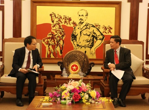 | Le ministre vietnamien des Transports et des Communications, Nguyên Van Thê (droite), et le représentant en chef de l'Agence japonaise de coopération internationale au Vietnam, Yasuo Fujita, le 6 décembre à Hanoï. |