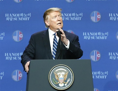 | Le président amériicain Donald Trump lors d’une conférence de presse donnée jeudi après-midi 28 février à Hanoï. |