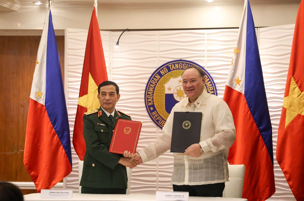 | Entretien entre le ministre vietnamien de la Défense, Phan Van Giang et son homologue philippin Gilberto Teodoro. |