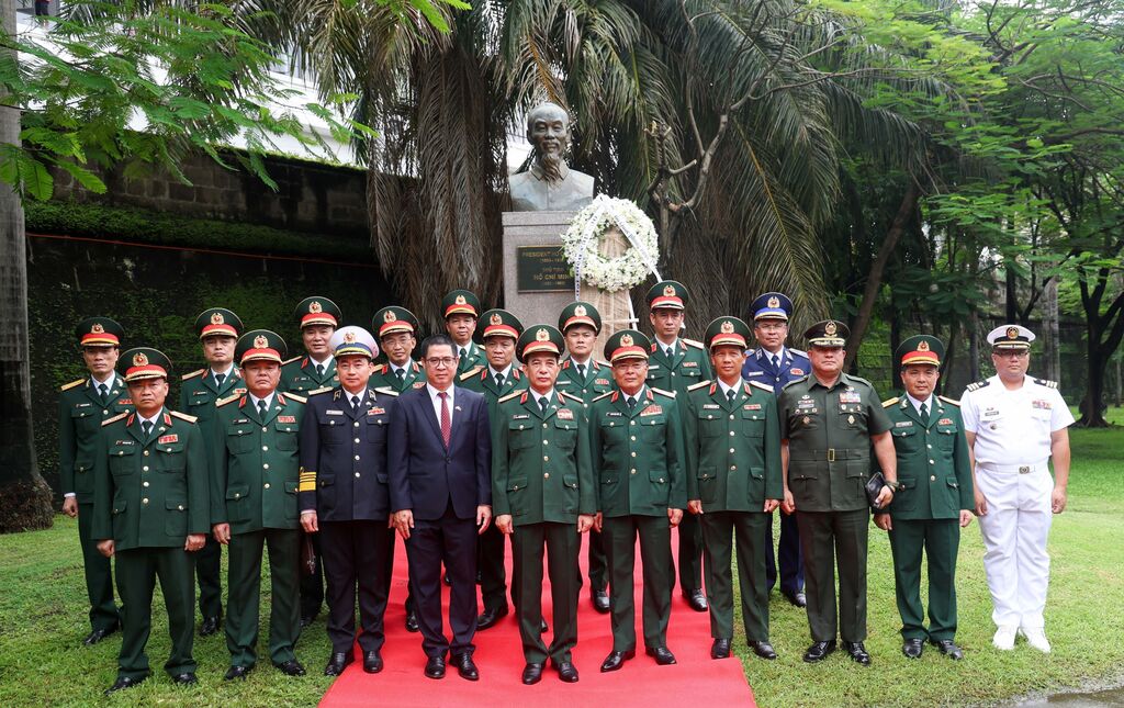 | La délégation du ministère vietnamien de la Défense rend hommage au Président Hô Chi Minh à Manille. |