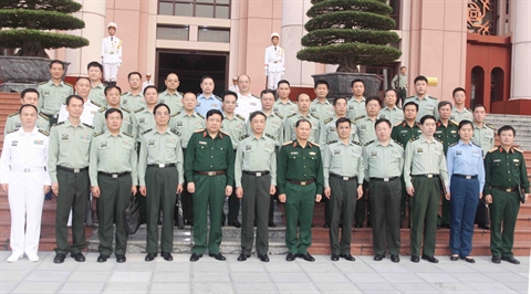 | Le général Phùng Quang Thanh, ministre de la Défense, et la délégation de l'Université de la Défense nationale de l'Armée populaire de Libération de Chine, le 22 octobre à Hanoi. |