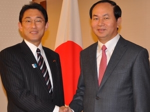 | Le ministre vietnamien de la Police, Trân Dai Quang (droite), et le ministre japonais des A.E, Fumio Kishida. Photo: Minh Sơn/VNA/CVN |