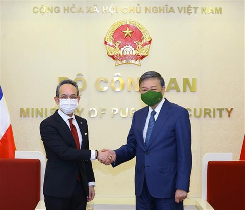 | Le ministre de la Police, Tô Lâm (droite), et l’ambassadeur thaïlandais Nikorndej Blankura, le 5 août à Hanoï. |