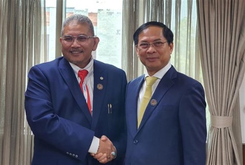 | Le ministre vietnamien des Affaires étrangères Bùi Thanh Son (droite) et le 2e ministre des Affaires étrangères du Brunei, Dato Erywan Pehin Yusof. |