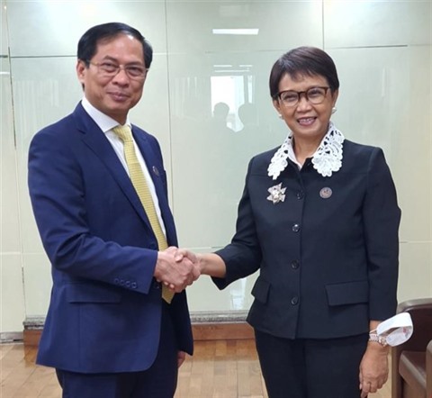 | Le ministre vietnamien des Affaires étrangères Bùi Thanh Son et la ministre indonésienne des Affaires étrangères, |