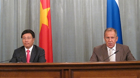 | Le ministre des Affaires étrangères Pham Binh Minh (gauche) et son homologue russe Sergey Lavrov |