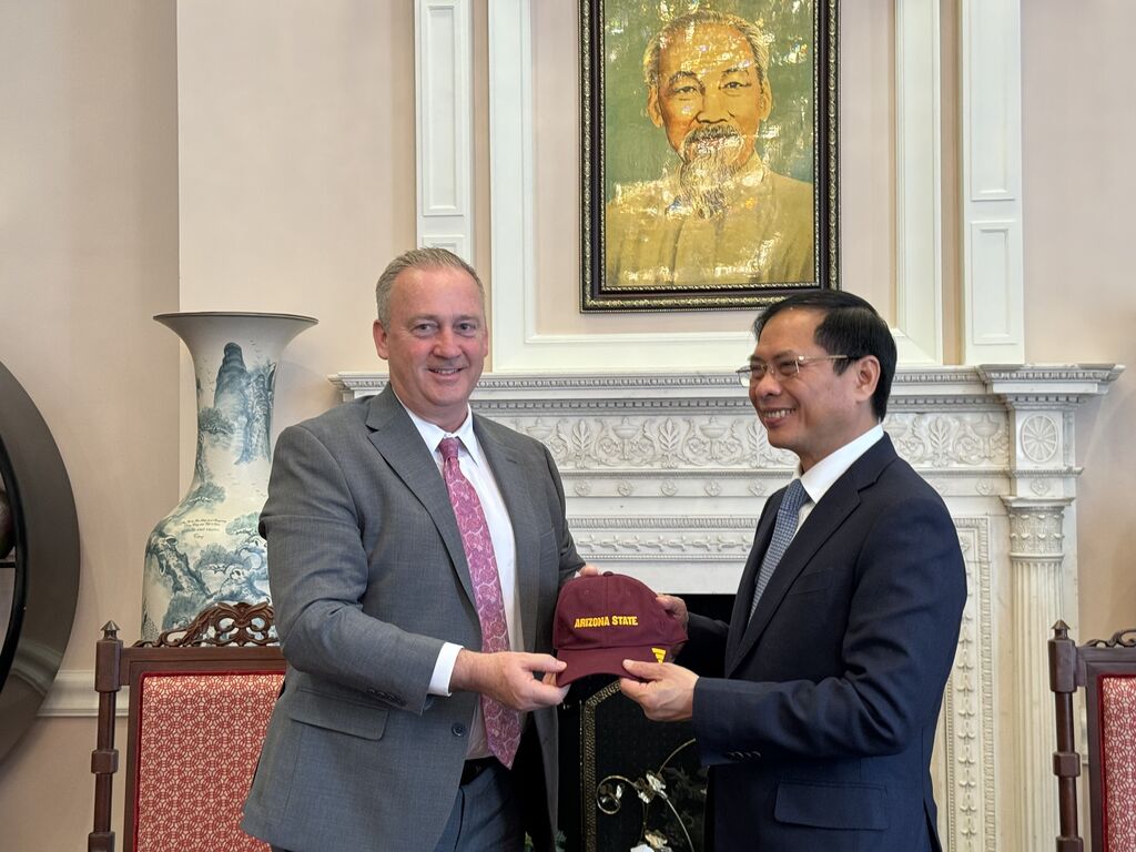 | Le ministre Bùi Thanh Son (droite) et le vice-président de l'Université d'Arizona, Jeffrey Goss. |