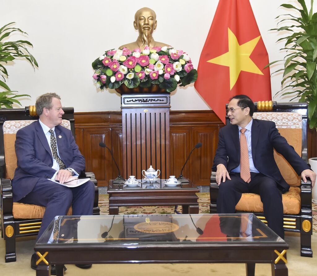 Il a accepté la proposition du ministre Bùi Thanh Son de promouvoir la coopération dans d'autres domaines tels que les sciences et les technologies, l'éducation et la formation, la coopération décentralisée, ainsi que l'agriculture biologique et intelligente. Il a souligné que le Royaume-Uni continuerait d'accompagner et de soutenir le Vietnam dans sa résilience face au changement climatique, le développement des énergies renouvelables et la finance verte.