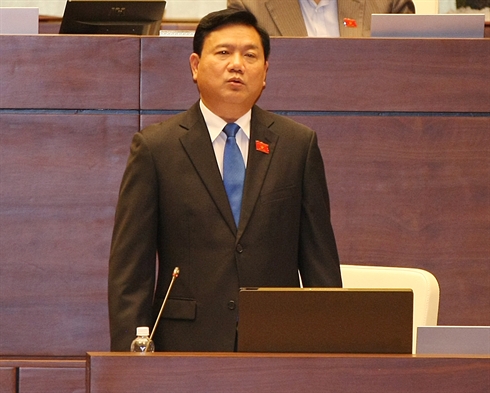 | Le ministre des Communications et des Transports, Dinh La Thang, répond aux questions de nombreux députés, |