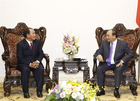 | Le Premier ministre Nguyên Xuân Phuc (droite) a reçu le 1er juin le ministre lao de la Justice, Saysi Santivong. |