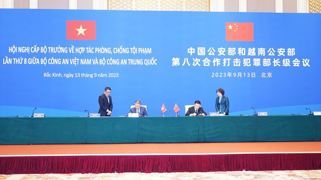 A l'issue de la conférence, Tô Lâm et Wang Xiaohong ont signé le compte-rendu de la 8e Conférence ministérielle sur la prévention et la lutte contre la criminalité entre le ministère de la Police du Vietnam et le ministère de la Sécurité publique de la Chine et le protocole d'accord sur le renforcement de la coopération dans la prévention et la lutte contre la criminalité transnationale liée aux jeux de hasard entre le ministère de la Police du Vietnam et le ministère de la Sécurité publique de la Chine.