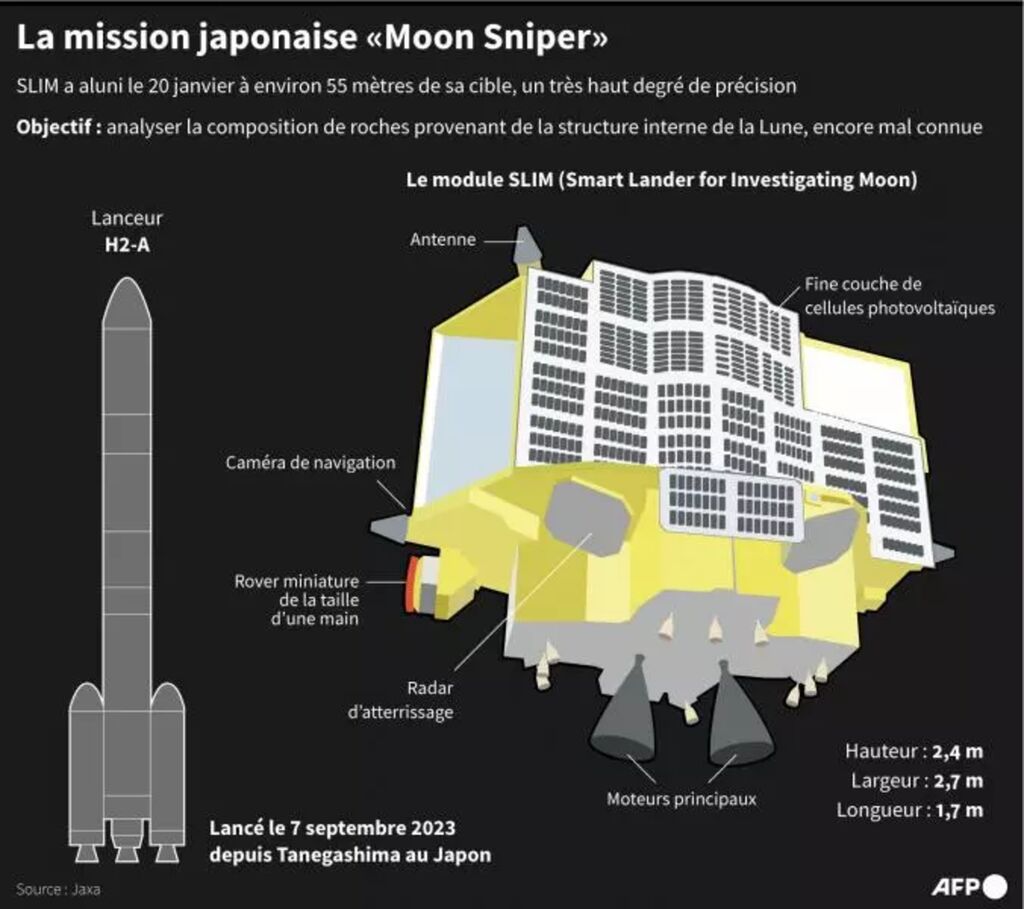 Le module SLIM (Smart Lander for Investigating Moon) avait réussi le 20 janvier un alunissage à 55 m de sa cible initiale, soit un très haut degré de précision, faisant du Japon le cinquième pays à réussir à se poser sur le satellite naturel de la Terre après les États-Unis, l'URSS, la Chine et l'Inde.