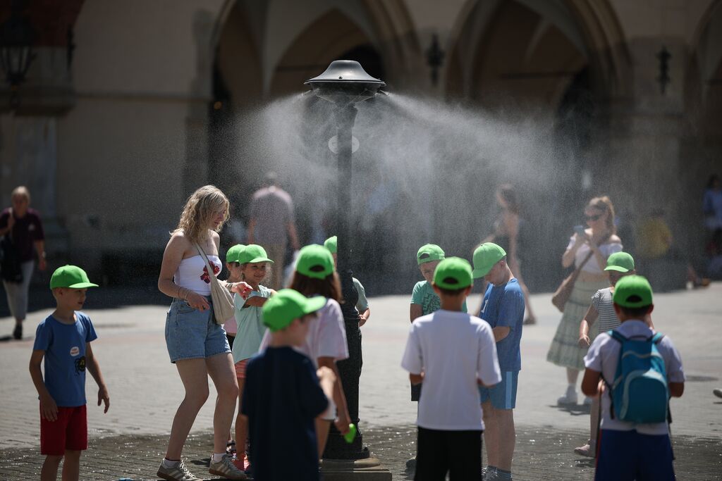 | Brouillard rafraîchissant par une chaude journée à Cracovie, en Pologne. |