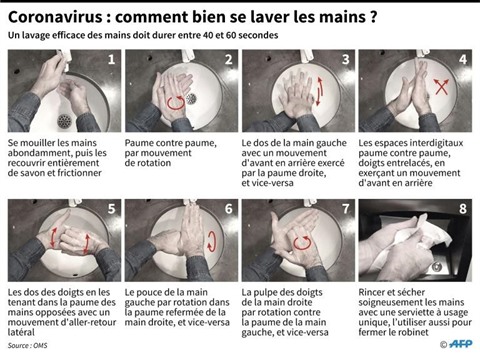 | Les différentes étapes pour se laver les mains efficacement. |