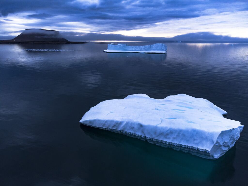 | Glace fonte dans la baie de Baffin, au Groenland. |
