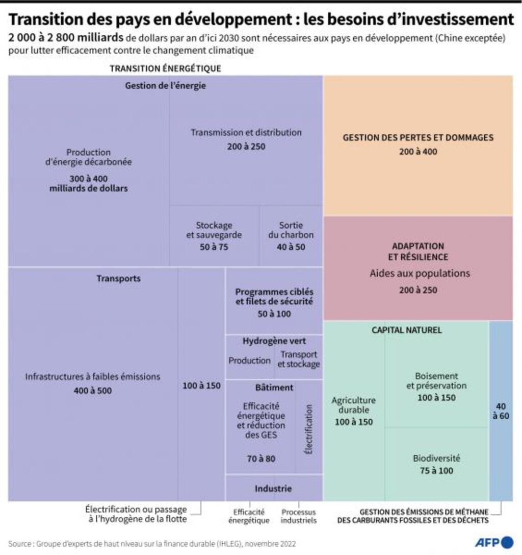 | Montants des investissements annuels nécessaires à la transition écologique des économies en voie de développement, par an d'ici 2030. |