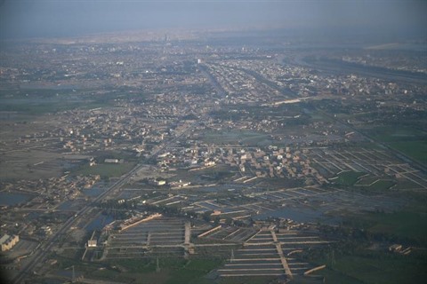 | Vue aérienne d'une zone inondée à Sukkur dans la province du Sind au Pakistan, le 9 septembre. |